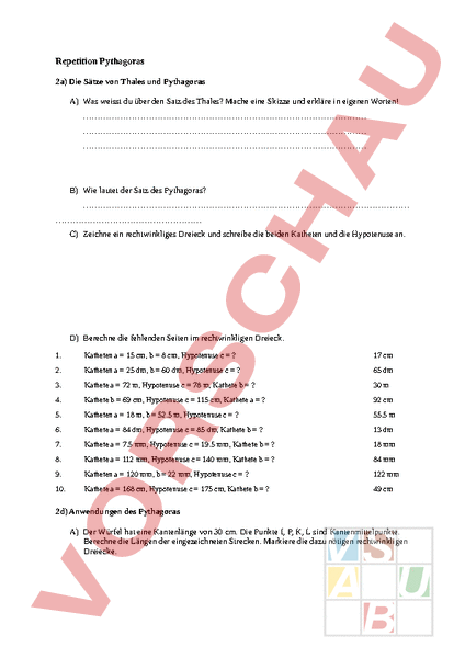 Arbeitsblatt: Repetition Pythagoras