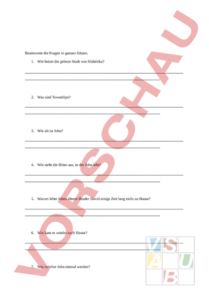 Arbeitsblatt: Fragen zum Text John und David aus Soweto