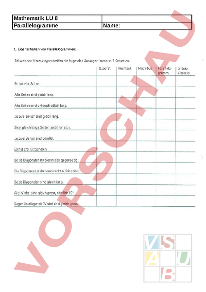 Arbeitsblatt: Mathematik Parallelogramme