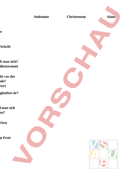 Arbeitsblatt: Vergleich der Weltreligionen
