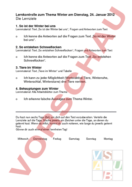 Arbeitsblatt: Lernziele Wintertest