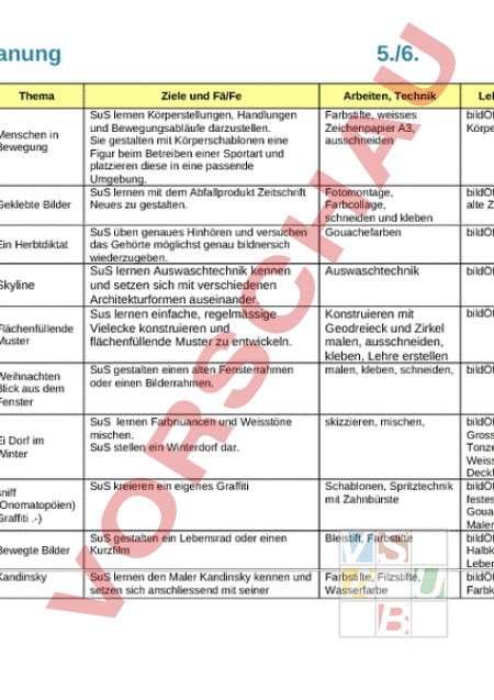 Arbeitsblatt: Planung BG 5./6. Klasse