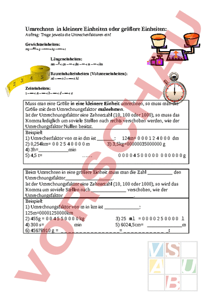 Arbeitsblatt: Umrechnen in kleinere und größere Einheiten