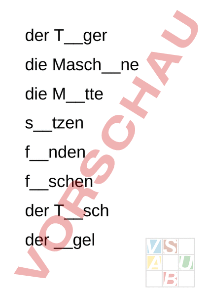 der Tger die Maschne die Mtte stzen fnden fschen der Tsch der gel die Knder die Schrft das Gft das Schff der Msthaufen du bst kndisch das Tr die Flge flgen er sht lgen der Spgel der Sg der Rse die Wse fs der Kselsten bgen du lst die Wge der Krg krchen das Kn