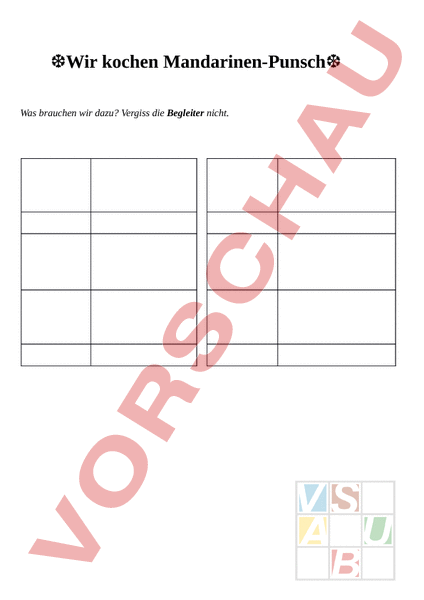 winterliches Punschkochen und dabei Wortschatz erweitern, Artikel üben und Satzanfänge finden