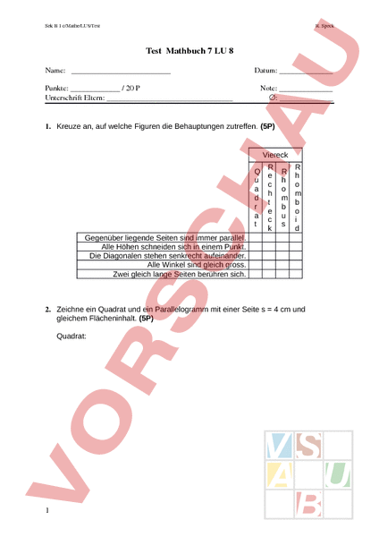 Arbeitsblatt: Mathbuch 7 Test LU 8
