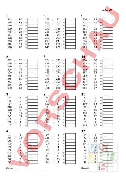 Arbeitsblatt: Kopfrechengenerator
