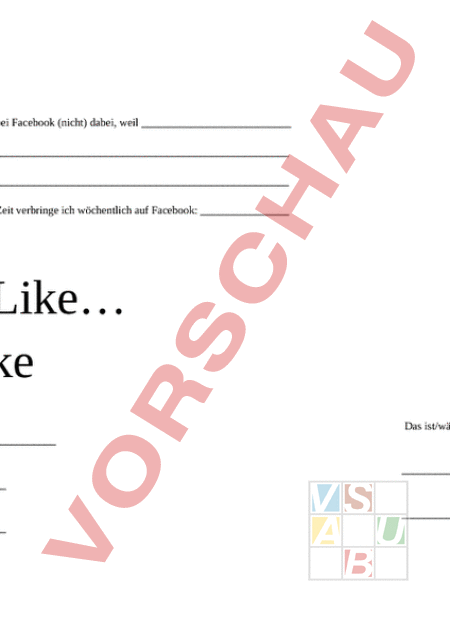 Ich bin bei Facebook (nicht) dabei, weil So viel Zeit verbringe ich wöchentlich auf Facebook: Like like Dont Das ist/wäre mir auf meinem Facebookprofil wichtig: Das kommt/käme nie auf mein Facebookprofil: