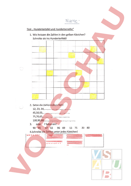 Arbeitsblatt: Test: Hunderterfeld und Hunderterreihe