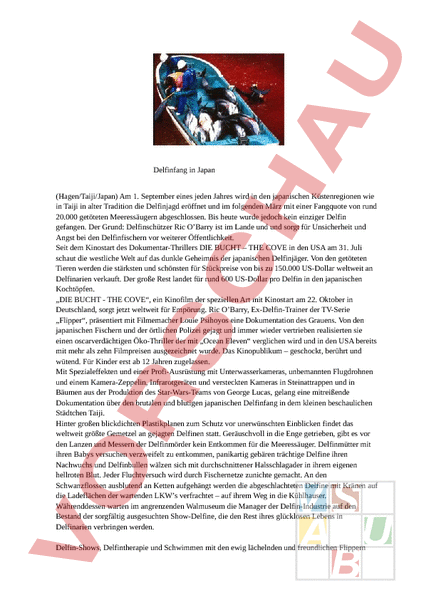 Arbeitsblatt: Delfinfang in Japan