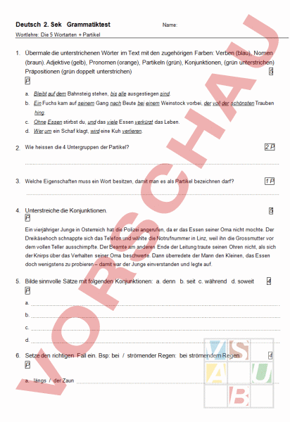 Arbeitsblatt: Test Partikel + 5 Wortarten
