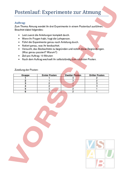 Arbeitsblatt: Experimente zur Atmung