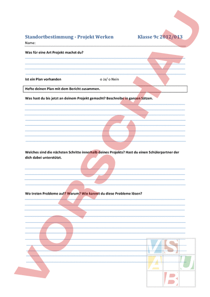Auswertungsblatt für Projekte Werken
