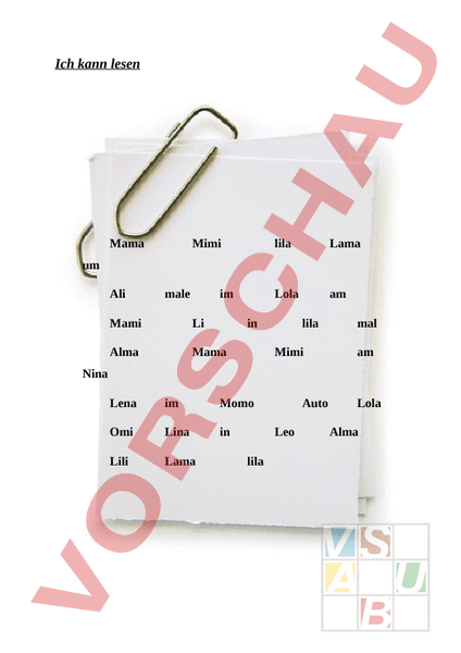 Ich kann lesen Mama Mimi lila Lama Lola am um Ali male im Mami Li in Alma Mama lila Mimi mal am Nina Lena im Momo Omi Lina in Lili Lama Auto Leo lila Lola Alma