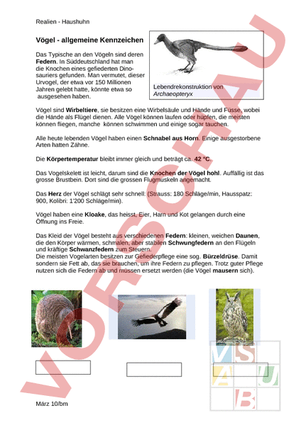Vögel allg. Huhn und Körperbau, Entwicklung Ei, Fortpflanzhung, Nutztier