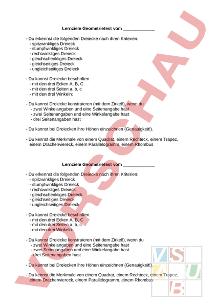 Arbeitsblatt: Lernziele Test Dreiecke