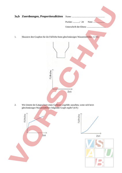 Arbeitsblatt: Test M2 3ab Zuordungen, Proportionalitäten