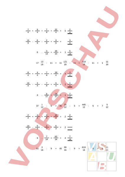 7 4 8 4 7 4 22 4 11 9 6 9 2 9 3 9 6 3 13 18 13 1 5 13 17 13 18 11 11 121 18 5 2 4 3 9 8 4 4 4 7 4 19 4 4 3 4 19 4 3 4 7 4 9 4 2 1 4 3 8 17 24 17 1 7 17 37 1 12 5 35 25 12 2 4 2 4 4 4 4 4 10 4 2 14 3 5 3 3 3 6 3 2 9 7 14 63 14 4 7 14 51 3 16 9 45 99 16 11 319 18 11 1 11 18 5 445 12 5 7 5 12 9 819 16 9 5 11 16 Repetition Bruchrechnen Lösungen Arbeitsblatt 1 1.) 7 4 8 4 7 4 22 4 2.) 11 9 6 9 2 9 3 9 6 3 13 18 13 1 5 13 17 13 18 11 11 121 18 11 3.) 4.) 5 2 4 3 9 5.) 8 4 4 4 7 4 19 4 4 3 4 6.) 19 4 3 4 7 4 9 4 2 1 4 3 8 17 24 17 1 7 17 37 1 12 5 35 25 12 5 2 4 7.) 8.) 9.) 2 4 4 4 4 4 10 4 2 10.) 14 3 5 3 3 3 6 3 2 9 7 14 63 14 4 7 14 3 16 9 45 99 16 9 11.) 12.) 51 1 11 18 7 5 12 5 11 16 Repetition Bruchrechnen Arbeitsblatt 1.) 7 4 8 4 7 4 2.) 11 9 6 9 2 9 6 3 13 17 13 18 11 3.) 4.) 5.) 8 4 4 4 7 4 6.) 19 4 3 4 7 4 3 8 17 37 1 12 5 7.) 8.) 9.) 2 4 4 4 4 4 10.) 14 3 5 3 3 3 9 7 14 3 16 9 11.) 12.) 51 11 5 9 1