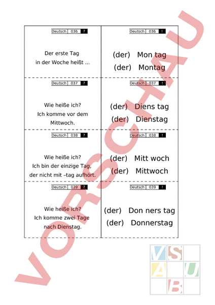 Arbeitsblatt: Lernkärtchen A7 Deutsch 036-045