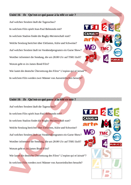 Arbeitsblatt: envol U16 LZ1 Fragen zum Fernsehprogramm