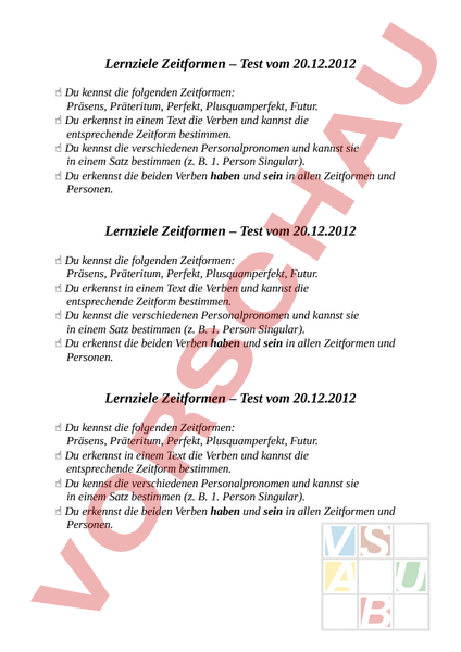 Arbeitsblatt: Lernziele D-Test Zeitformen
