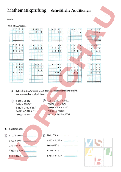 Mathematikprüfung Schriftliche Additionen . Name:
