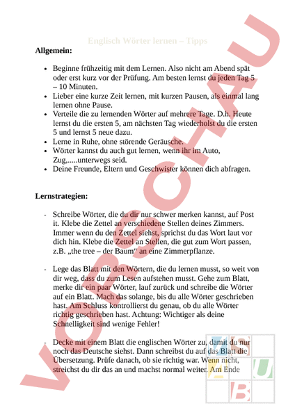 Arbeitsblatt: Englisch Wörter lernen - Tipps