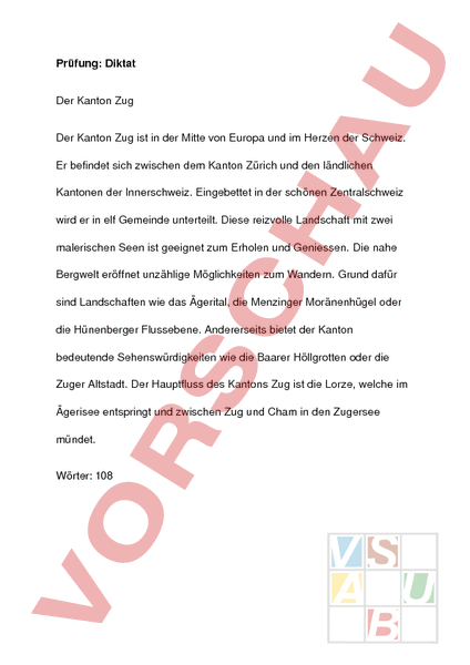 Arbeitsblatt: Diktat Kanton Zug