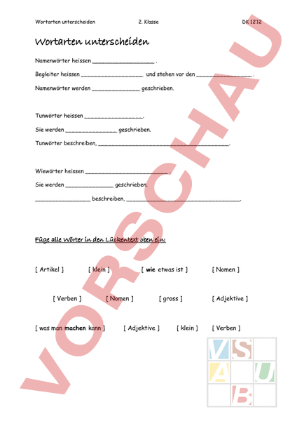 Arbeitsblatt: Wortarten unterscheiden