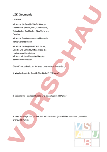 Arbeitsblatt: LZK Geometrie 4. Klasse