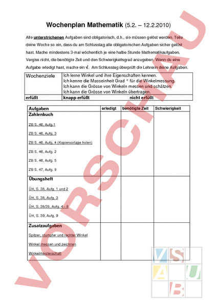 Arbeitsblatt: Wochenplan Winkel