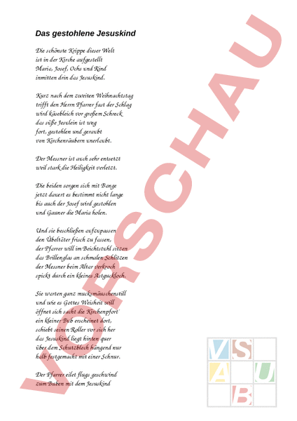 Arbeitsblatt: Das gestohlene Jesuskind