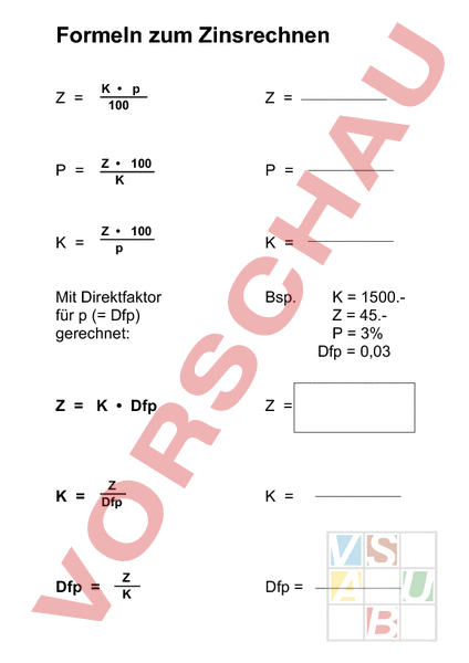 Arbeitsblatt: mathbu 8.11 Formeln zum Zinsrechnen