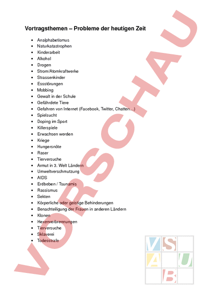 Arbeitsblatt: Liste - Vortragsthemen