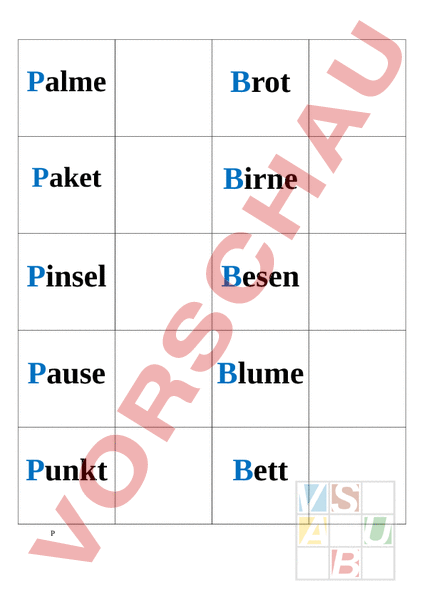 Ein Memory zum Üben des Unterschiedes von b/p.