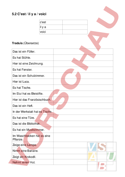 Arbeitsblatt: Envol 5.2 C'est, il y a, voici