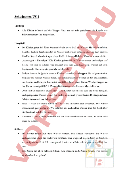 Arbeitsblatt: Wassergewöhnung/Schwimmen