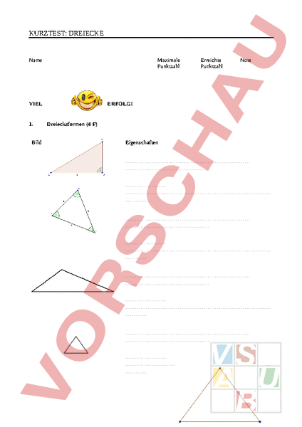 Arbeitsblatt: Kurztest 'Dreiecke'