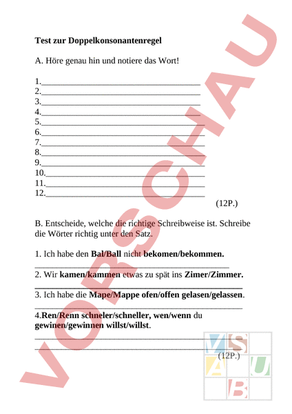 Arbeitsblatt: Doppelkonsonantentest 6.Klasse