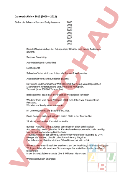 Arbeitsblatt: Jahresrückblick 2012