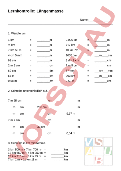 Arbeitsblatt: Test Längenmasse