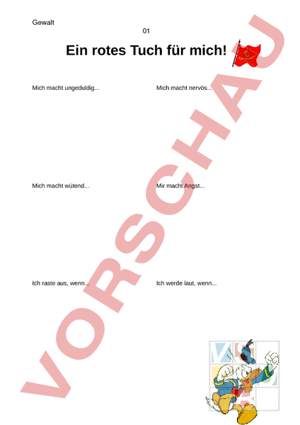 Gewalt 01 Ein rotes Tuch für mich! Mich macht ungeduldig. Mich macht nervös. Mich macht wütend. Mir macht Angst. Ich raste aus, wenn. Ich werde laut, wenn.