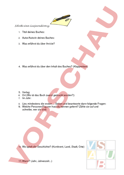 Arbeitsblatt: Schreibe einen Lesejournaleintrag