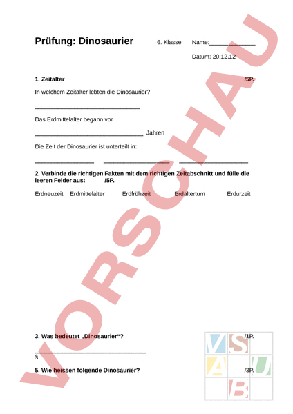 Arbeitsblatt: Prüfung Dinosaurier