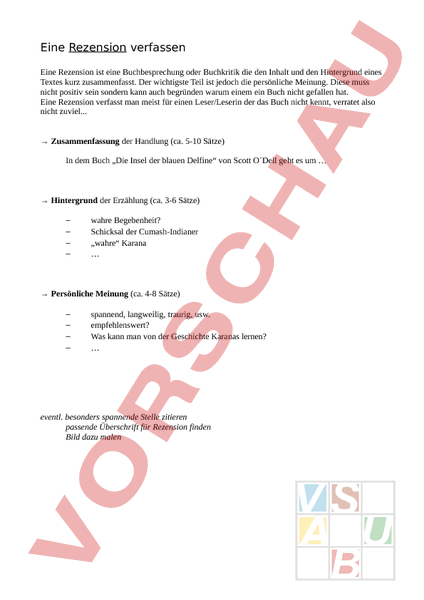 Anleitung zum Verfassen einer Rezension. Geeignet als Folie und eventl. als Arbeitsblatt.