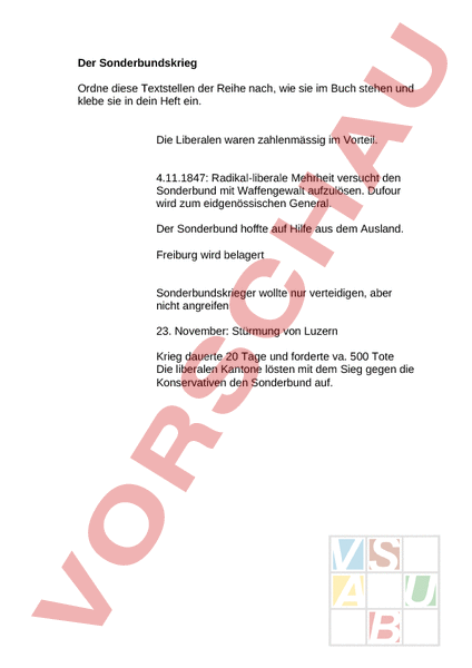 Arbeitsblatt: Sonderbundeskrieg