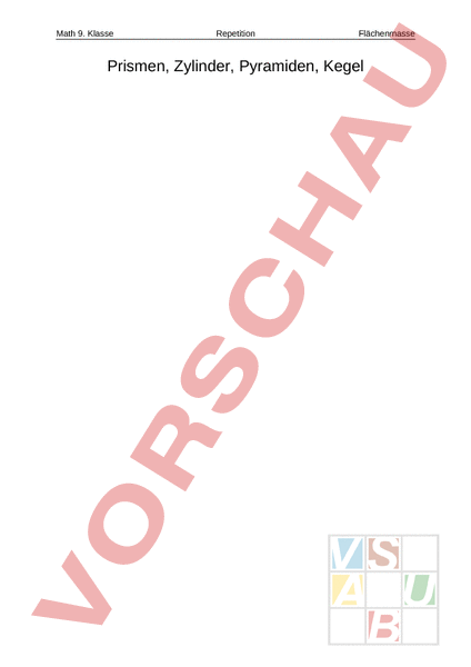 Math 9. Klasse Repetition Flächenmasse Prismen, Zylinder, Pyramiden, Kegel