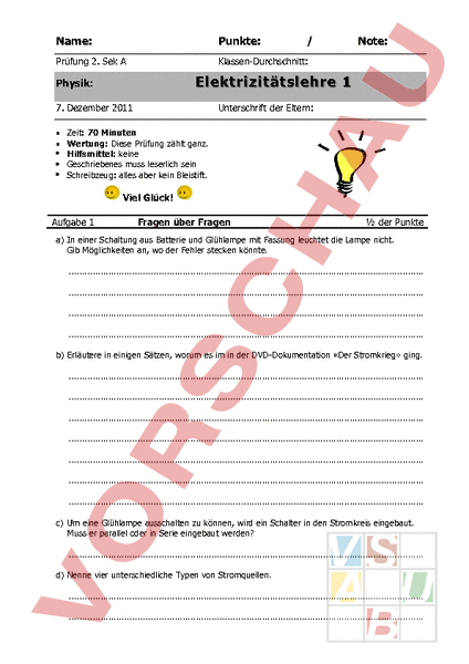Arbeitsblatt: Prüfung Elektrizitätslehre 1