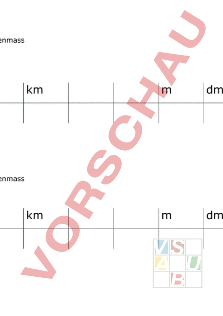 Stellenwertsystem (Tabelle) der Längenmasse (km, m, dm, cm, mm)