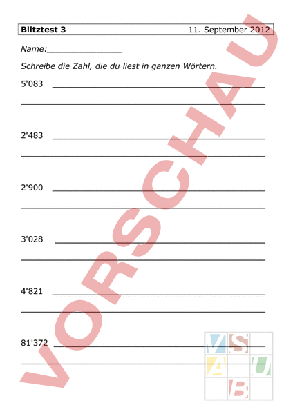 Arbeitsblatt: Blitztest 03 Zahlen in Wörter schreiben